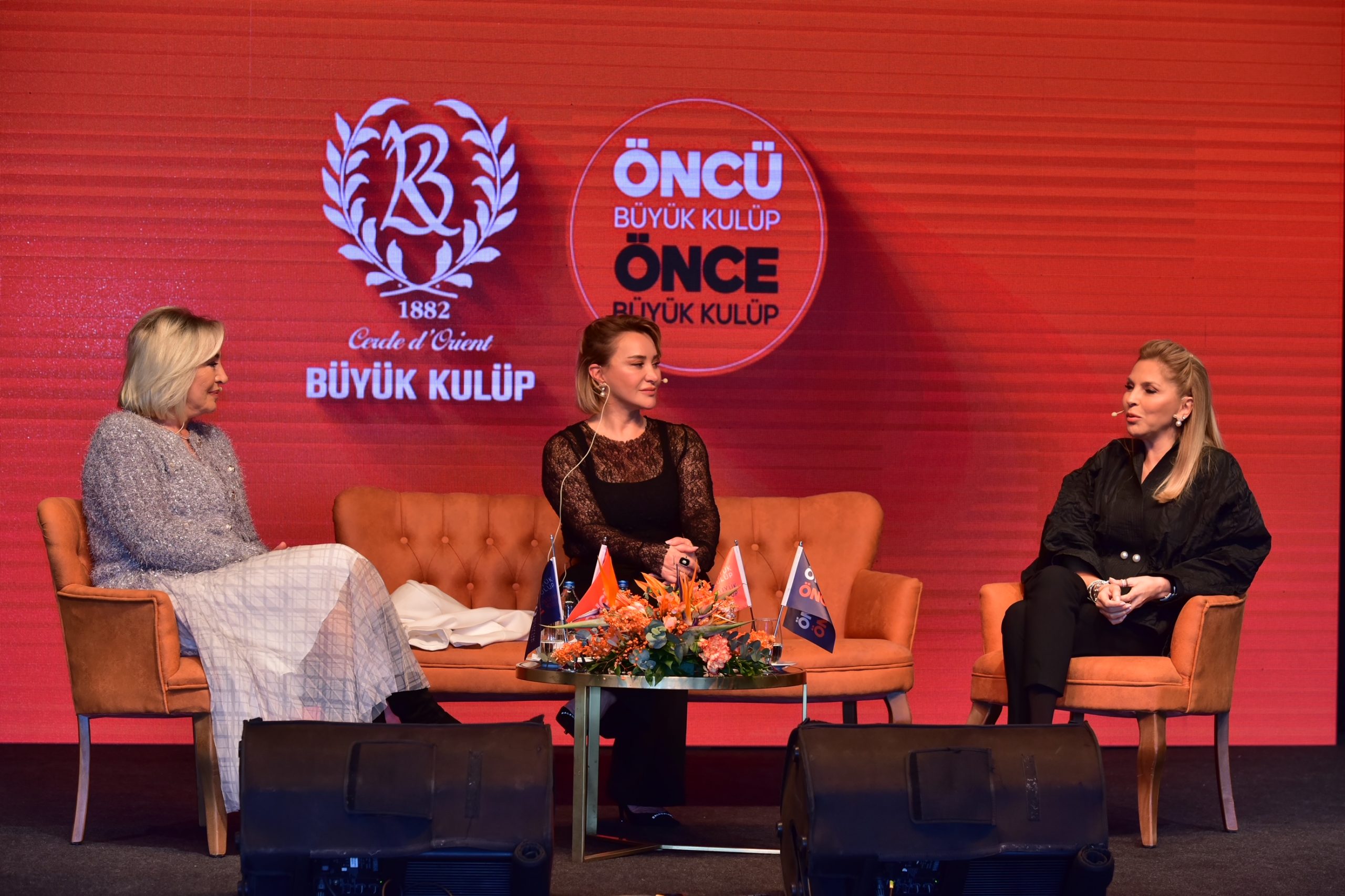 Büyük Kulüp Cemiyet Hayatının örnek kadınlarını ağırladı. Büyük Kulüp BaÅŸkan Adayı Talat Yılmaz ve Büyük Kulüp BaÅŸkan Yardımcısı Adayı Eser Bayraktar, 8 Mart Dünya Kadınlar Günü çerçevesinde, cemiyet hayatının örnek kadınları Arzu Sabancı, Aslı Gümüşel Åžen ve Gülenay Kalkan’ın katıldığı bir panel düzenledi. 500’den fazla Büyük Kulüp kadın üyesinin katıldığı panelde Arzu Sabancı, Aslı Gümüşel Åžen ve Gülenay Kalkan yaÅŸamlarından anekdotları, sosyal sorumluluk projelerini, kültür&sanata olan katkılarını, Büyük Kulüp ile ilgili anılarını ve kadınlara ilham veren hikayelerini dinleyiciler ile paylaÅŸtılar. Büyük Kulüp BaÅŸkan Adayı Talat Yılmaz panelde yaptığı konuÅŸmada, 24 Mart’da kulüpte gerçekleÅŸecek seçimde kadınların gücünü temsil edecek bir yönetim kadrosu ile yenilikçi adımlar atarak, daha çaÄŸdaÅŸ, kadın-erkek temsilinde eÅŸitlikçi bir yönetim anlayışıyla aday olduklarının altını çizdi.