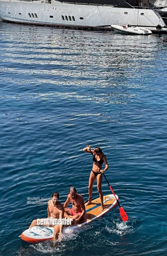 Sanem-Volkan Büyükhanlı çiftiyle bir araya gelen Demirağ, dostlarıyla denizde keyifli vakit geçirdi.