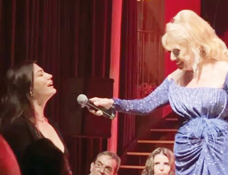 Geceye damgasını vuran an ise Akkor’un sahneden Özdemir’e mikrofon uzatması oldu. İkili, “Bir Ateşe Attın Beni” adlı şarkıyı birlikte seslendirdi. Salondakilerden büyük alkış alan düet sonrasında Akkor, Özdemir’e övgü dolu sözler söyledi: “Harikasınız, zaten sesinizi biliyoruz.”